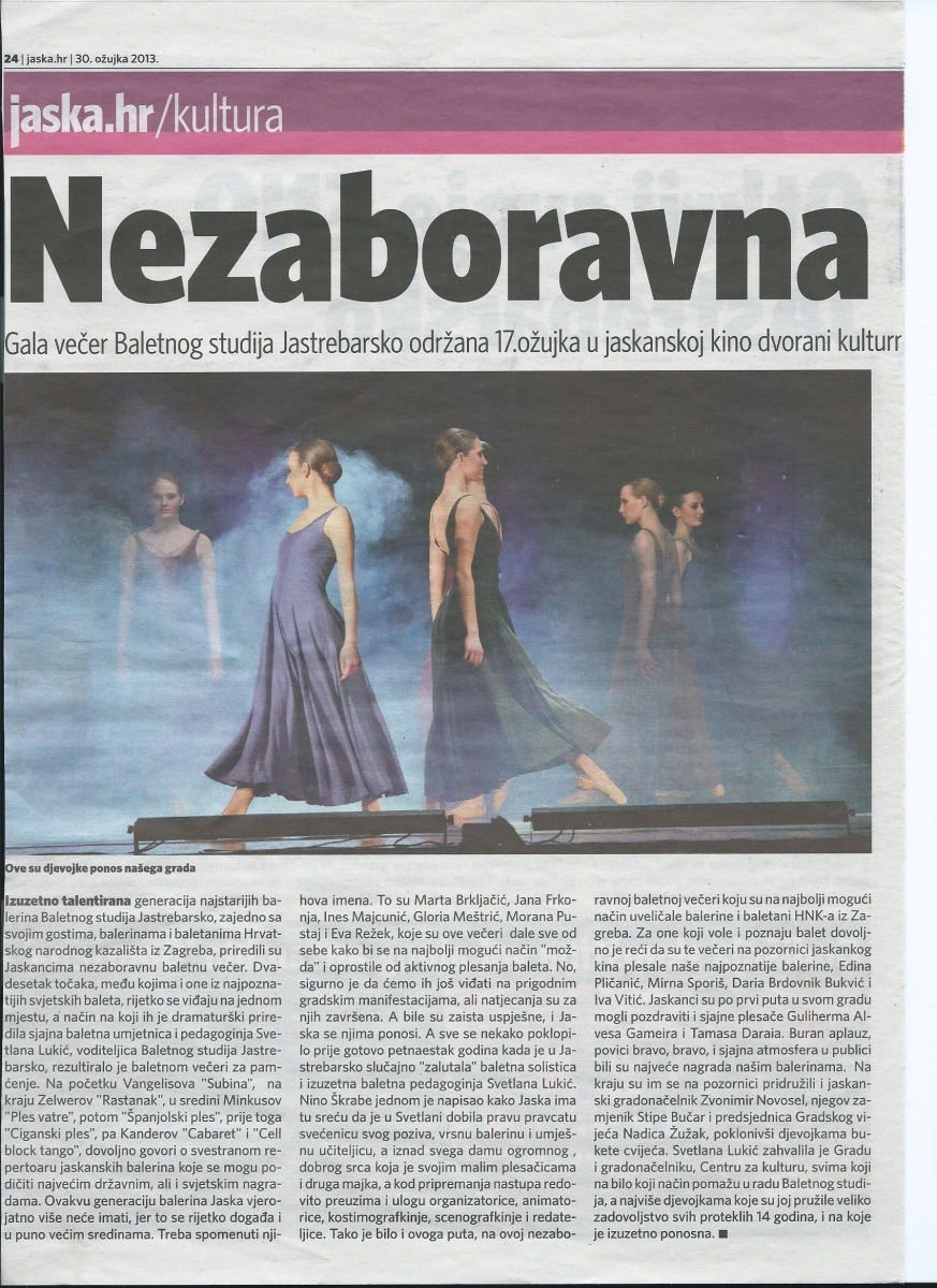 Gradu na dar 2013 - 15 godina baletnog studia Jastrebarsko.